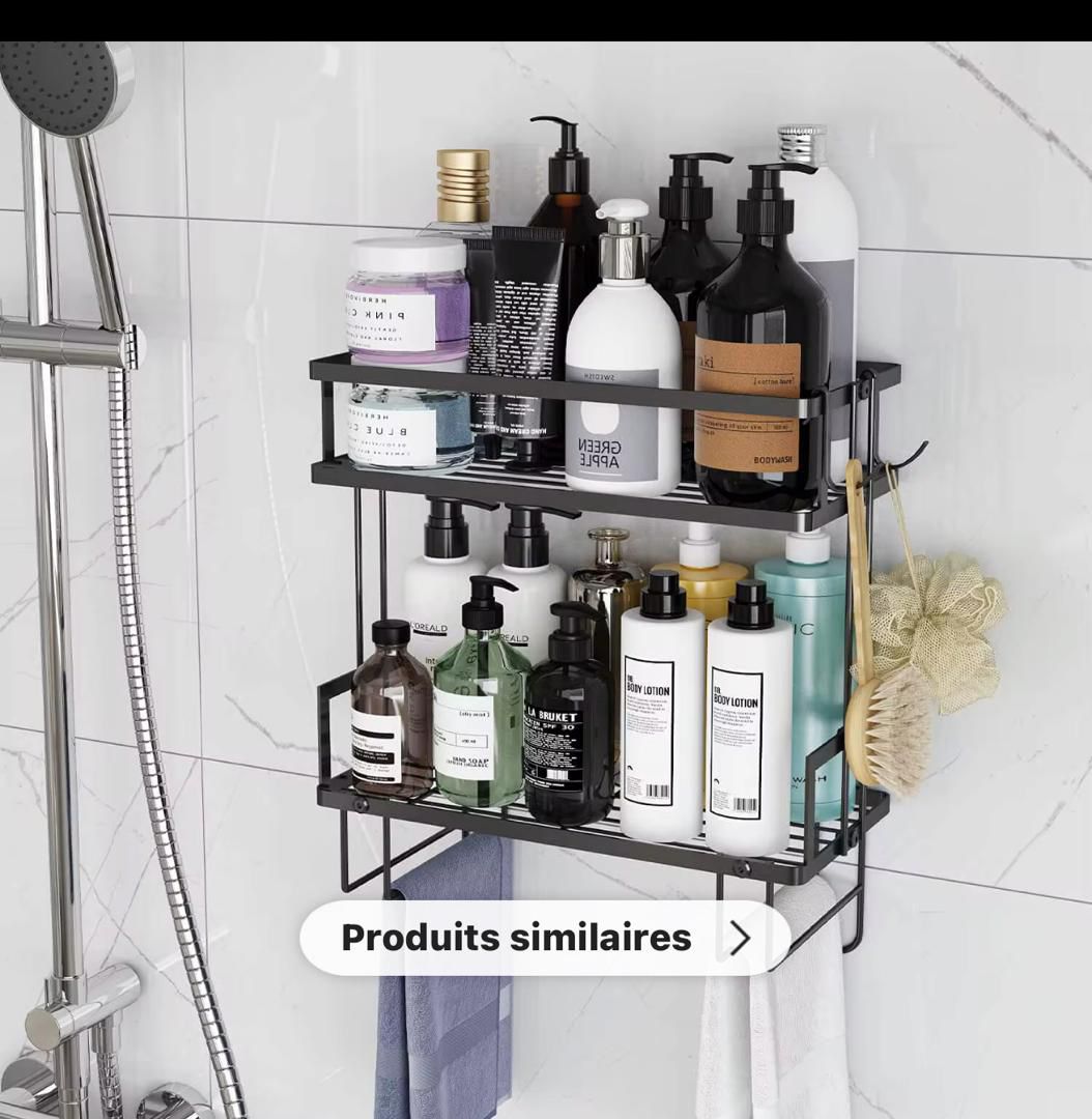 Organisez votre salle de bain avec élégance grâce à ce porte-accessoires mural multifonction. Conçu pour allier design moderne et praticité, ce support en métal noir vous permet de ranger efficacement vos serviettes, flacons de savon, produits de soins, bougies et autres accessoires. Sa structure solide et esthétique apporte une touche de luxe et de propreté à votre espace.