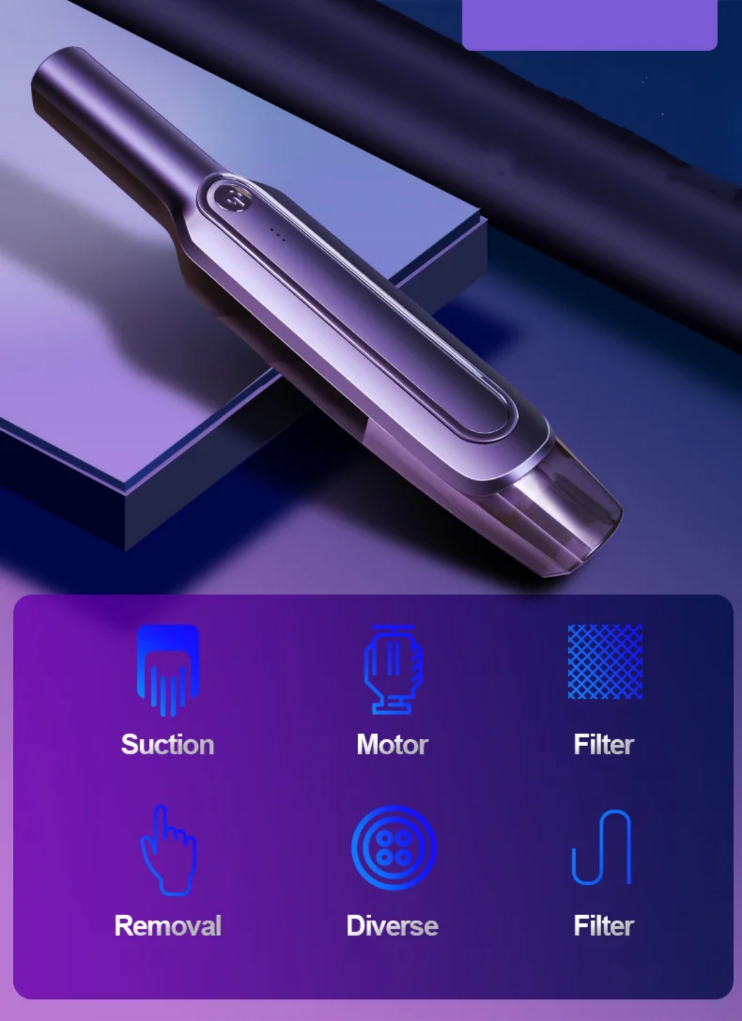 Découvrez le Mini Aspirateur Sans Fil Portable, l’outil indispensable pour un nettoyage rapide et efficace de votre voiture, bureau ou maison. Compact, léger et élégant, il combine puissance d’aspiration et praticité dans un design moderne. Grâce à sa batterie rechargeable et son format ergonomique, il permet d’éliminer poussières, miettes et poils d’animaux en un clin d’œil, même dans les coins les plus difficiles d’accès.