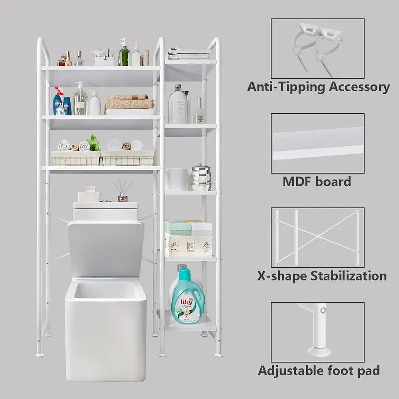 Optimisez l’espace de votre salle de bain avec l’étagère de rangement au-dessus des toilettes — une solution pratique et élégante pour organiser vos essentiels sans encombrer le sol. Conçue avec une structure stable et moderne, cette étagère s’intègre parfaitement dans tout type de décoration, tout en offrant de multiples niveaux de rangement pour vos serviettes, produits de soin, papiers toilettes et accessoires.